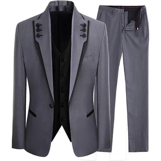 Men Tuxedo Suits Slim Fit 3 Piece Formal Suit Set Bridegroom Wedding Suit Blazer Vest Pant Party Suit