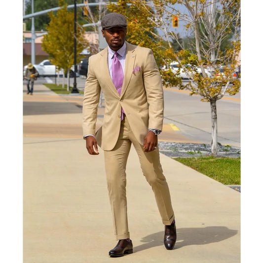 Jacket Sets Champagne Wedding Suits For Men Two Button 2 Pieces Outfits Slim Fit Custome Large Size Tuxedo Grooms Dress