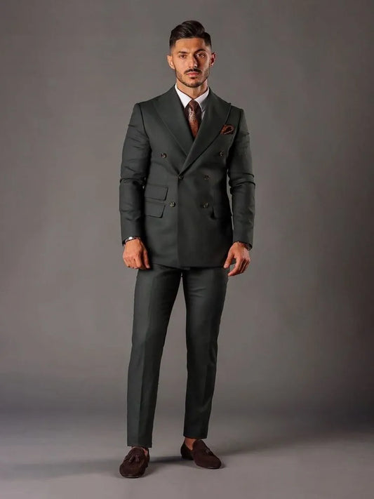 Dark Gray Jacket Sets Wedding Suits For Men Double Breasted 2 Pieces Outfit Slim Custome Large Size Tuxedo Grooms Dress