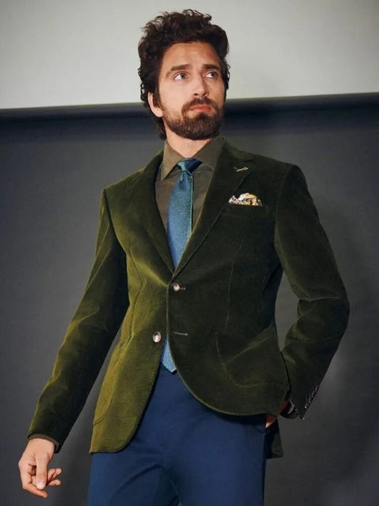 Dark Green Velvet Wedding Suits For Men Slim Fitted Costumes Tuxedo Blazer Sets Groom Formal Clothing Set Pants And Jacket 2 Pcs