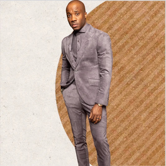 Blazer Gray Velvet Modern Men'S Suits For Weddings Prom Dresses Slim Fit Tuxedo 2 Pieces Custom Jacket Set (Coat+Pants)