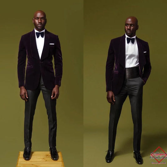 New Boyfriend Suit Man Dark Purple Velvet Men'S Full Wedding Blazer Sets Slim Fit Business Casual Groom 2 Pieces Custom Tailcoat
