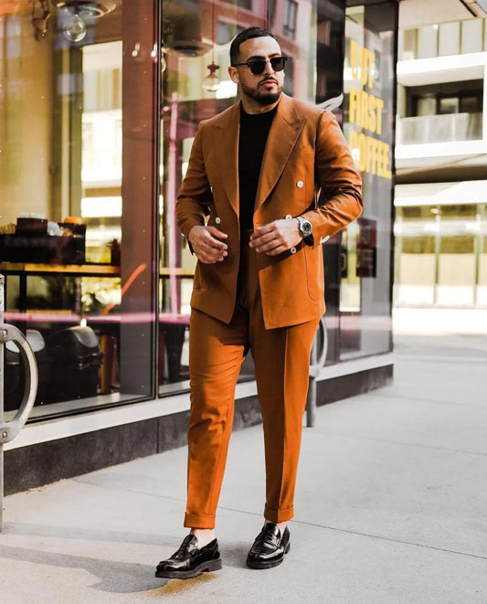 Blazer Sets Wedding Suits For Men 2 Pieces Outfits Slim Fit Custome Orange Double Breasted Large Size Tuxedo Homme Dress