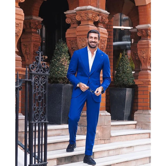 Royal Blue Jacket Sets Wedding Suits For Men 2 Pieces Outfit Slim Fit Custome Large Size Tuxedo Grooms Party Prom Dress