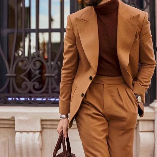 Wedding Suit For Men Slim Fit Brown Two Button Dress Blazer Sets Custom Tuxedo Homme 2Piece (Jacket+Pants)