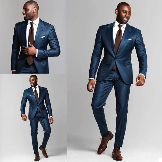 2 Pcs Men Suits Wedding Tuxedos Plus Size Peaked Lapel One Button Groom Groomsmen Suit Custom Made