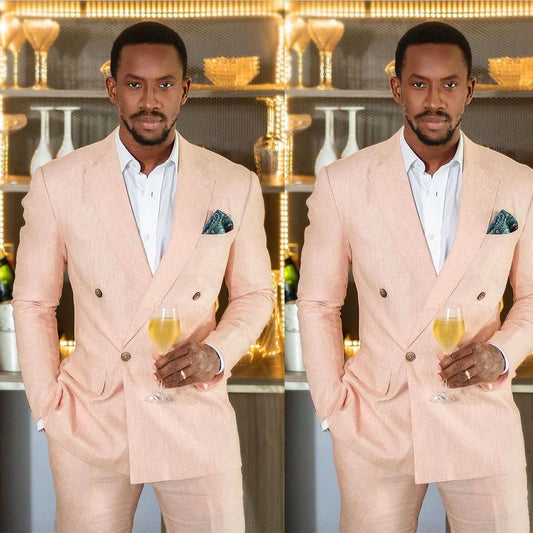 Wedding Men's Suit Double Breasted Slim Fit Custome Tuxedo Male Suits Groom Prom Party Blazer Sets 2Piece(Jacket+Pants)