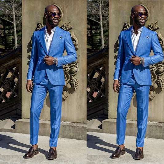 2 Pieces Stripe Formal Wedding Tuxedos Suits Blazer Pants Custom Made Groom Groomsmen Suit Men