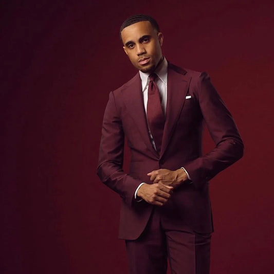 Burfundy Formal Business Casual Suit Wedding Party 2 Pieces Jacket Trousers Set Blazer Coat Pants Fashion Slim Fit Dress