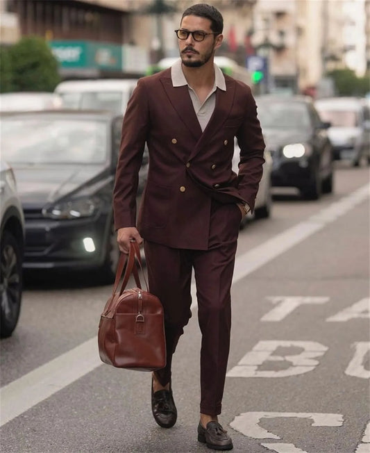 Wedding Suits For Men Custom Homme Brown Slim Fit Tuxedo Business Casual Gentleman 2 Pieces Prom Dress (Jacket+Pants)