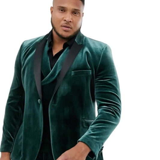Men's Suits Velvet Slim Fit 3Pcs Single Breasted Tuxedo Coat Vest Trousers Suit Set for Wedding Prom Terno