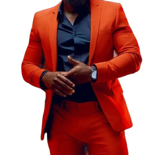 Classic Orange Wedding Men'S Suit Slim Fit Formal Custom Groom Tuxedo Prom Party Business Casual Outfits 2 Pieces (Jacket+Pants)
