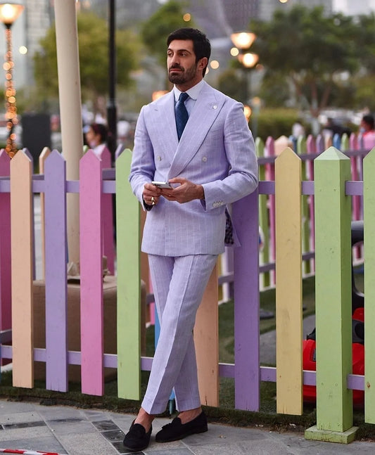 Men'S Suits Slim Fit Purple Striped 2Pcs Suit Double Breasted Tuxedo Custom Wedding Gentleman Formal Business Casual Clothes