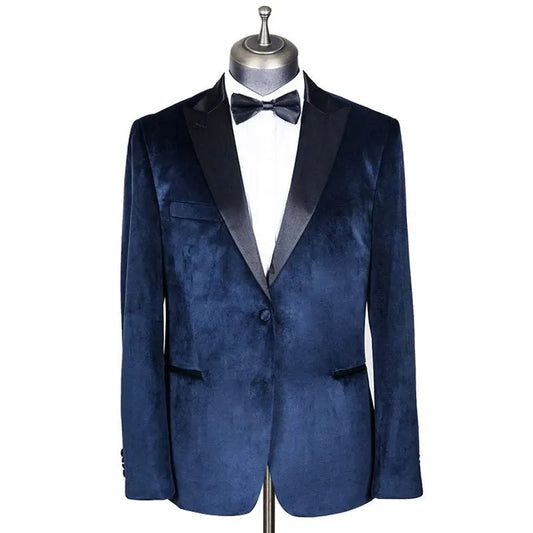 Men Suit Set Deep Blue Velvet Slim Blazers Business Formal Pants Coats Wedding Groom Jackets Homme Costume