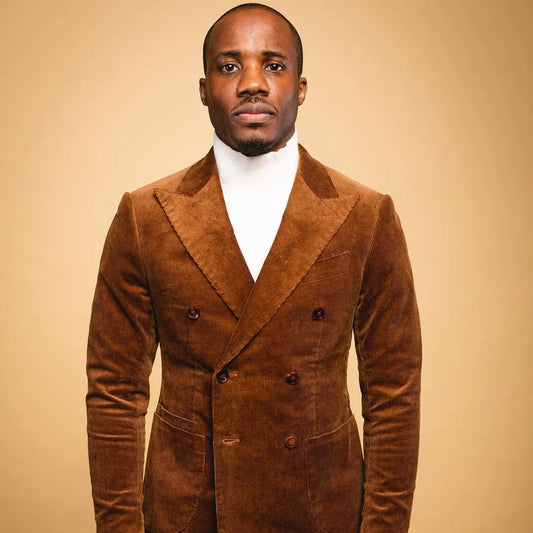 This 2-piece men's corduroy double-breasted blazer set is designed for weddings, proms, and other formal...