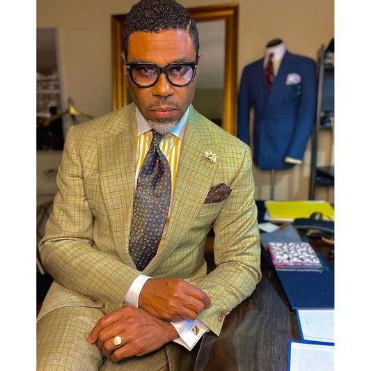 Wedding Suit For Men Slim Yellow Plaid Groom Tuxedo Dress Design Blazer Sets Custom Clothes 2 Piece(Jacket+Pants)