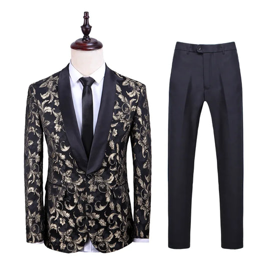 Atmosphere Flower printed Slim Fit Men Suit 2 pcs set Casual Tuxedo Groom Wedding dress Prom Men Suit