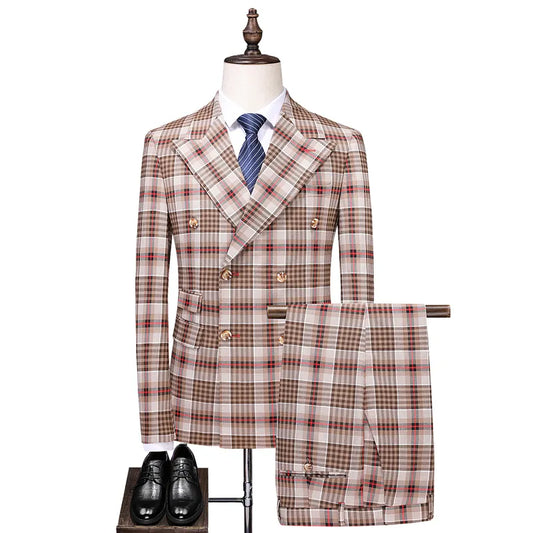 Double-breasted Suit Men's English Plaid Jacquard Business Casual Suit Men Are Decorating Body Groom's Wedding Dress Two-pi