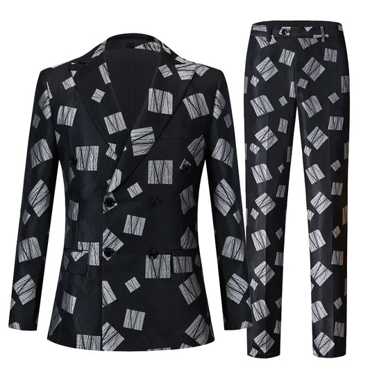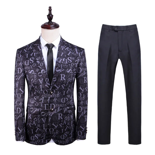 Fashion Letter pattern print Men Suit Casual 2 peiece set Best man Tuxedo Groom Wedding dress Men Suits Slim Fit suit Clothing