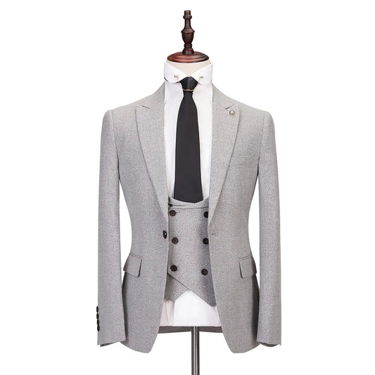 Gray Jacquard Peak-lapel Collar Double-breasted Men's Suit Banquet Wedding Dress Two-piece Set