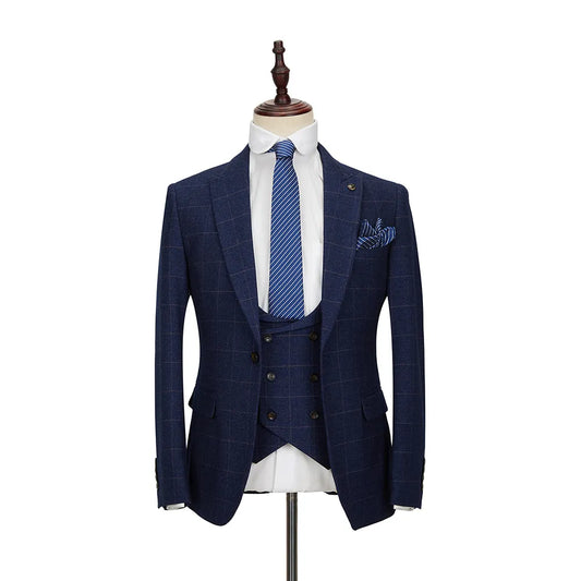 Fashion Men Suits 3 Piece Casual Slim Coarse plaid print Suit Groom Wedding party Costume Homme Business suit