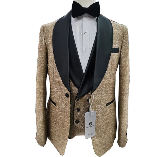 Men's Fashion Positioning Decal Sequin Suit Two-piece Wedding Banquet Singer Dress Top + Pants