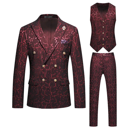 New Men's Business Casual Suit Korean Version Slim Wedding Dress Suit Men's Printed Large Size Three-piece Set