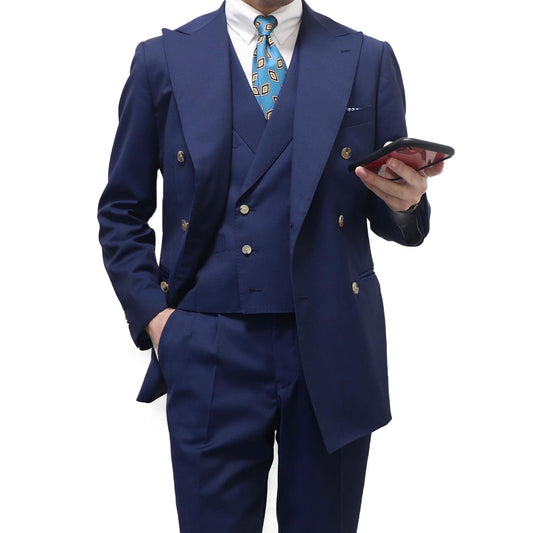 Dark Blue Classic Business Men Suits With Three Pieces Jacket Vest Pants Custom Made Designer Wedding Formal Occasion