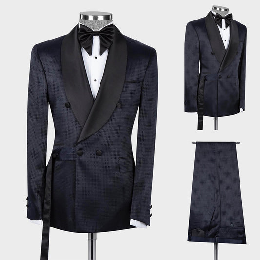 Fashion Jacquard Blue Wedding Men Suits New Business Tailor-Made Groom 2-Pieces Solid Pants Formal Occasions Party Customized