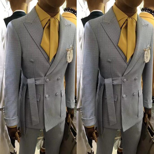 Modern Men Suits One-Piece Suit Vintage Business Jacket Custom made Belt Herringbone Wedding Tuxedos New in winter