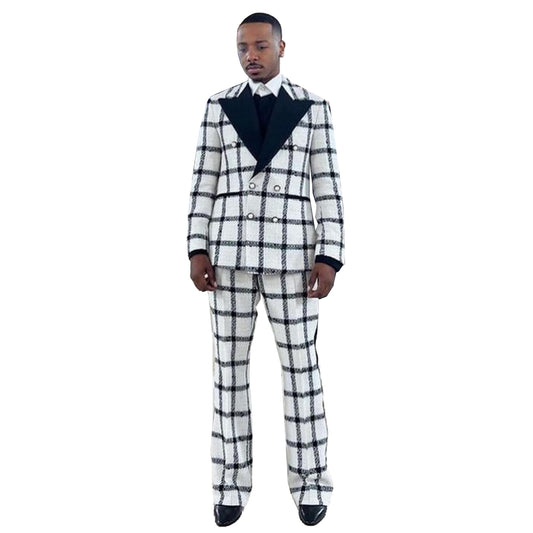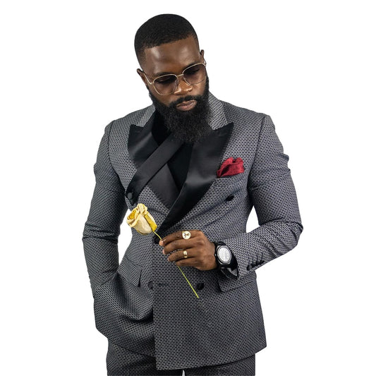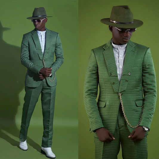 Wedding Men Suit Dark Checkered Tailor-Made Tuxedo 2-Pieces Jacket Pants Blazer Party Singer Groom Costume Made