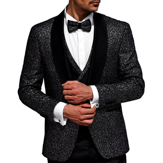 Black Men Suits With One Button 3 Pieces Jacket Vest Custom Made Bridegroom Wedding Formal Occasiom