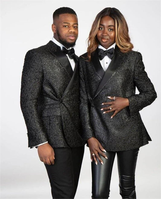 Luxury Black Men Suits Set For Wedding 2 Pcs Blazer+Pants Groom Tuxedo Appliqued Sequins Custom Made Formal Prom Jacket Coat