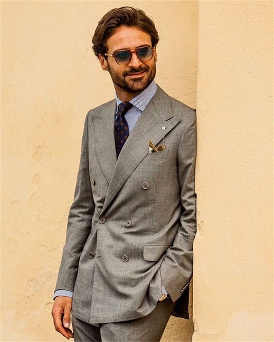2 Pieces Casual Men Suit Custom Made Male Business Blazer+Pants Tuxedos Peaked Lapel Double Breasted Party Prom Wedding Suits
