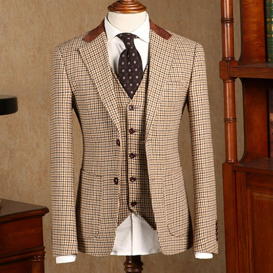 Khaki Men Suits Blazer+Vest+Pants Set 3 Pcs Formal Wedding Groom Tuxedos Tailor-Made Custom Size Jacket Coat Outfit