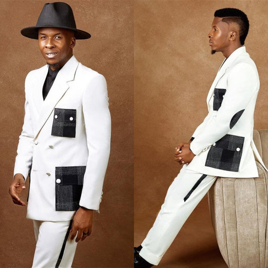 Men Suits Set Wedding Groom Tuxedo White 2 Pieces Blazer+Pants With Plaid Pockets Fashion Prom Dress Male Coat Custom Made