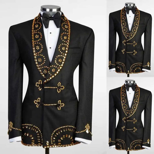 Handsome Wedding Tuxedos Rhinestone Beaded Double Breasted Men Suit Shawl Lapel 1 Piece Set Jacket Groom Blazers Customized