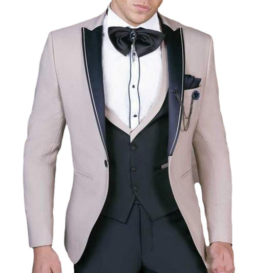 Groomsmen Peak Lapel Groom Tuxedos Men Suits Wedding Dress Prom Dresses Dinner Suit Best Man Blazer 3Pieces(Jacket+Pants+Vest)