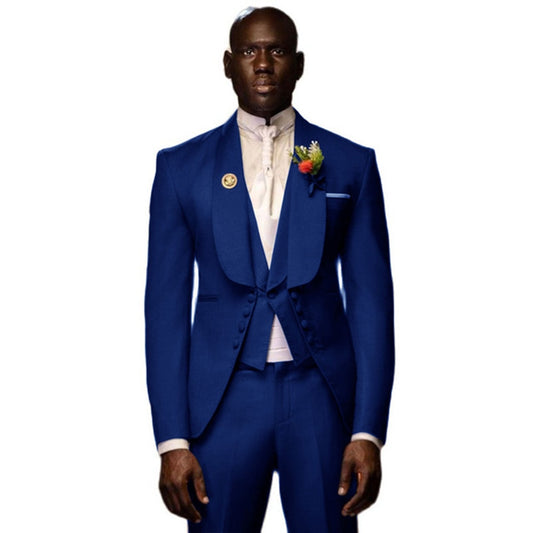 Blue 3 Pieces Wedding Formal Men Suits Tuxedos Blazer Trousers Slim Fit Groom Party Wear Prom Dress Jacket+Vest+Pants