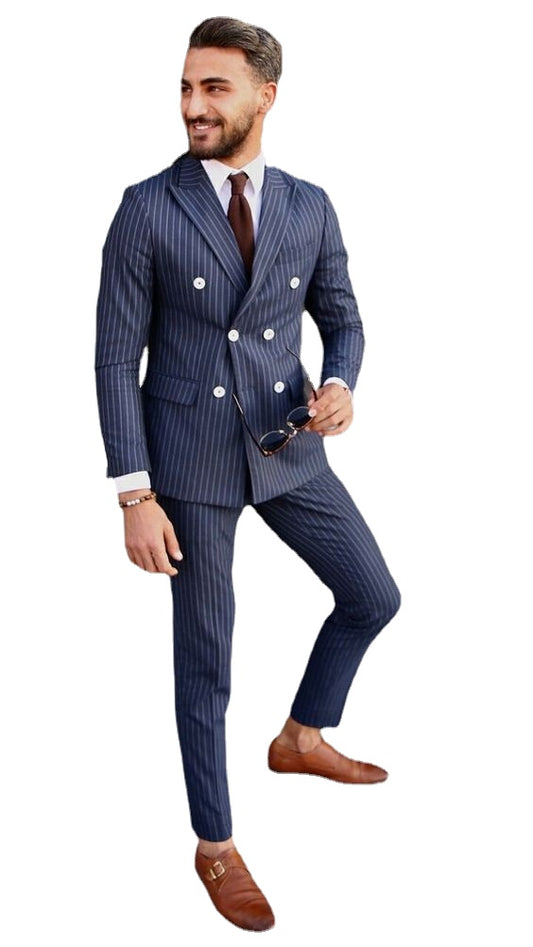Double Breasted Men Suits Peak Lapel Groom Tuxedos for Wedding SuitsTwo Pieces (Jacket Pants) Formal Blazer