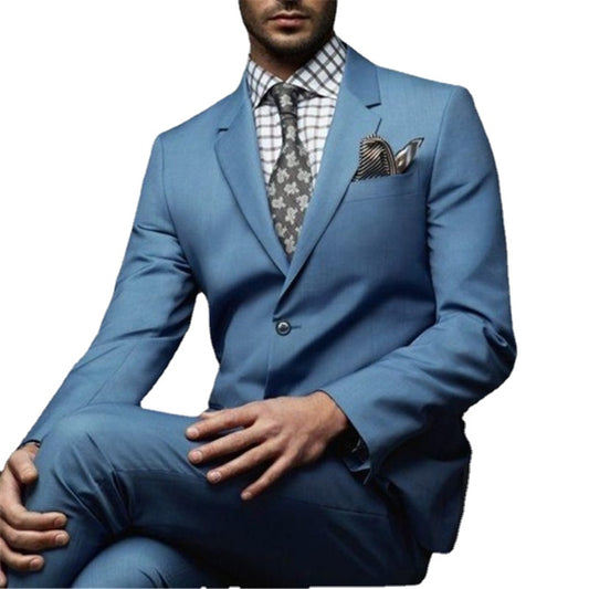 Light Blue Blazer Trousers Men Suits Sets 2Pcs(Jacket+Pants+Tie) Coat Designs Casual Wedding