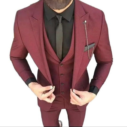 New Men Suits Groom Wedding Tuxedos Three Pieces (Jacket+Vest+Pants) Formal Prom Best Men Blazer