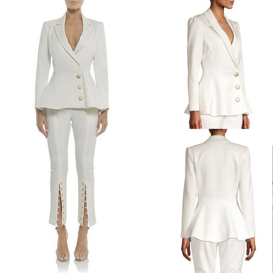 Women Blazer Suits Long Sleeve Double Breasted Formal Outfits Evening Party Wedding Slim Leg Pants Suit 2 Pieces