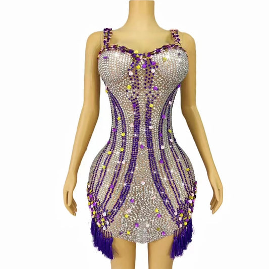 Make a dazzling entrance in this Sexy Fringe Rhinestone Dress — a high-impact, performance-first gown...