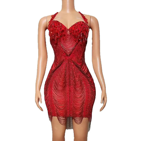 Make a breathtaking entrance in this Luxurious Shining Rhinestones Sexy High-Split Transparent Mesh Tube Dress...