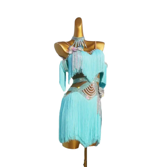 This high‑end, custom Latin dance costume is designed for female performers who want a timeless, elegant, and...