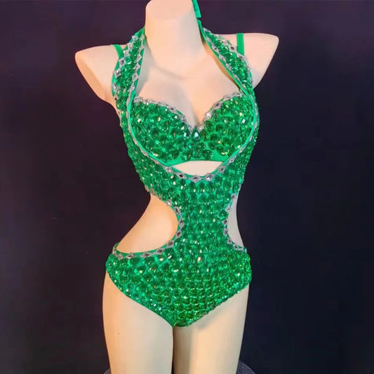 Turn the stage into your runway with this Women Stage Rhinestone Crystals Bodysuit Costume —...