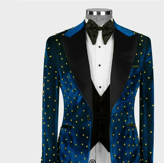Presentamos nuestro lujoso traje de 3 piezas con cuentas para hombre, la opción perfecta para...