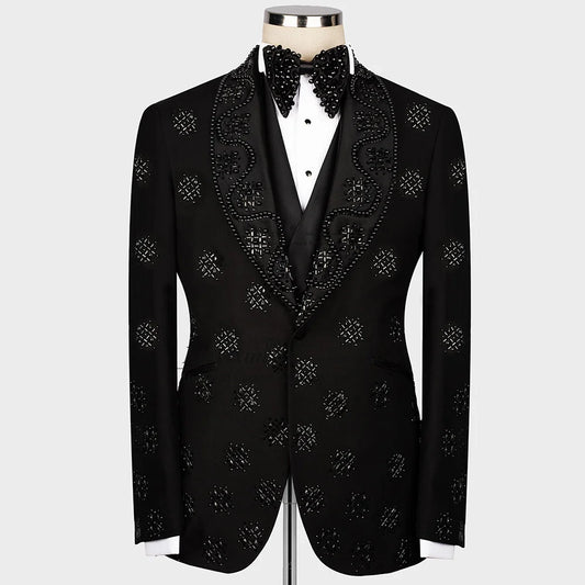 Elegante esmoquin con cuentas y diamantes de imitación para hombre: traje de boda de 3 piezas, perfecto para el novio, cenas y eventos de graduación.