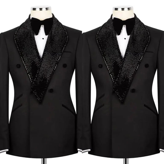 Exquisitos trajes de boda para hombre, conjunto de blazer con cuentas de cristales, esmoquin formal para novio, personalizado, negro, para banquete y fiesta, 3 piezas, vestido masculino